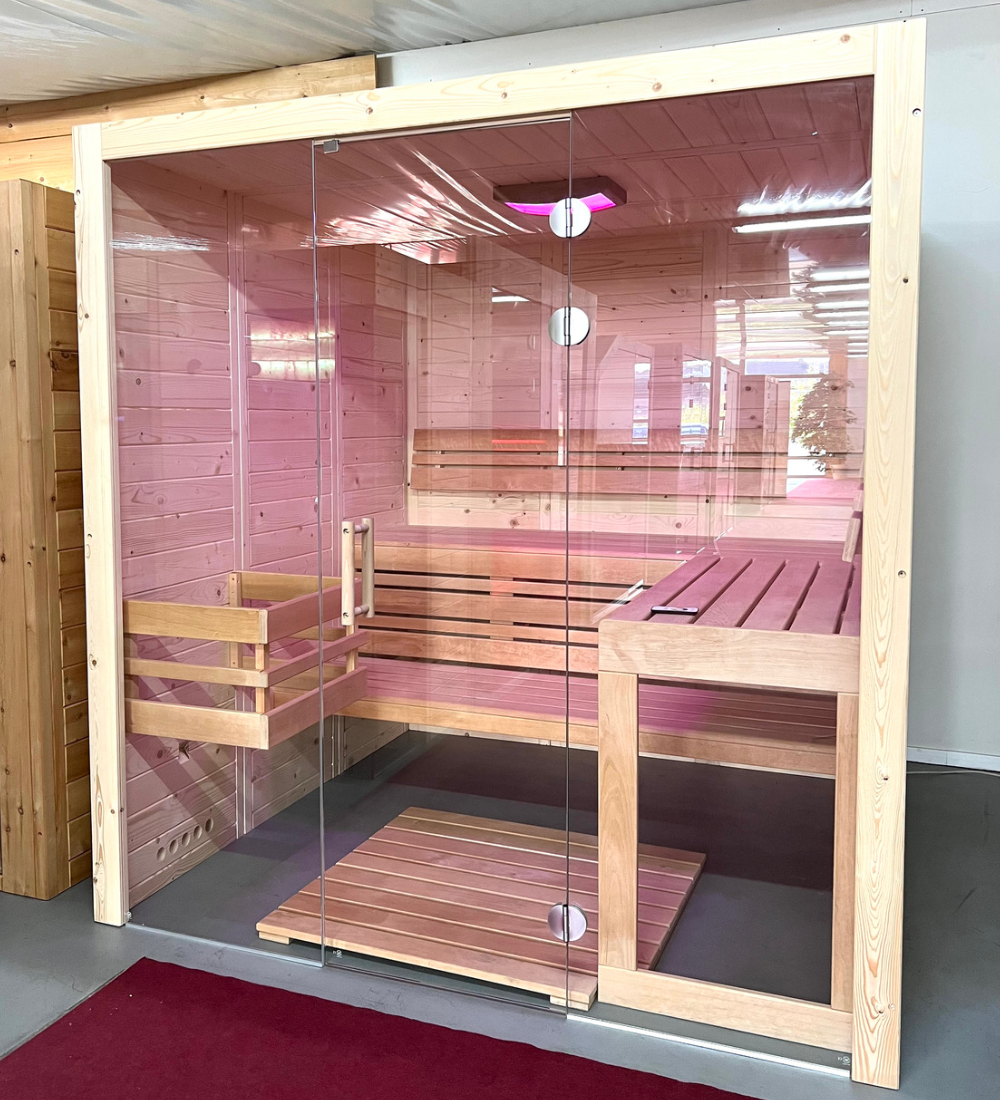 Mit unserem 3D Sauna Konfigurator können Sie Ihre Traumsauna ganz nach Ihren Wünschen online zusammenstellen. Wählen Sie zwischen unterschiedlichen Holzarten, Saunaformen und Zusatzmodulen und lassen Sie sich optisch inspirieren. Nach Ihrer Konfiguration erhalten Sie einen detaillierten Kostenvoranschlag für Ihre maßgeschneiderte Sauna. Kommen Sie dem Saunatraum einen Schritt näher und konfigurieren Sie sich Ihre eigene Sauna.